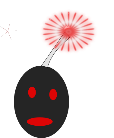 This features a black and red circle with a face drawn on it. It appears to be an artistic representation of a bomb, possibly inspired by the popular meme "bomba." The circle has two red dots for eyes, giving it a playful and creative appearance. The overall design is simple yet captivating, making it an interesting visual piece.