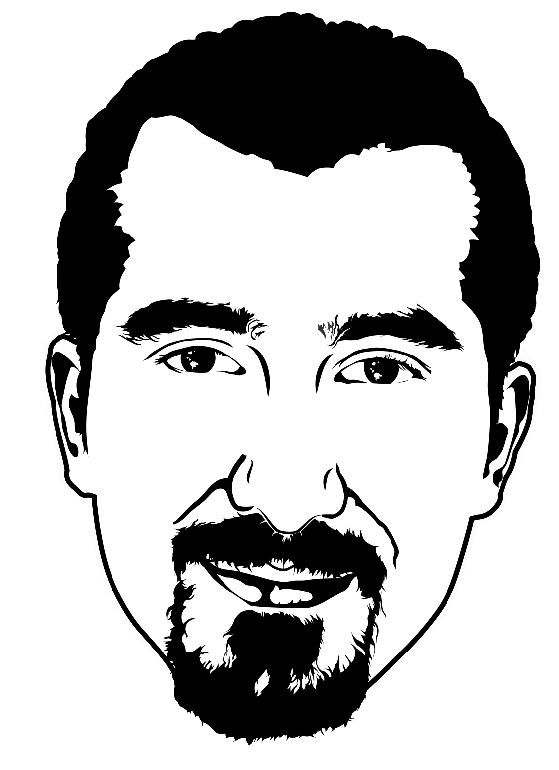 This is a black and white portrait of a man with a beard. He has a mustache, goatee, and a beard that extends down his chin. His eyes are open, and he appears to be smiling as the picture was taken. The man's head occupies most of the frame, and there is no background visible in the image.