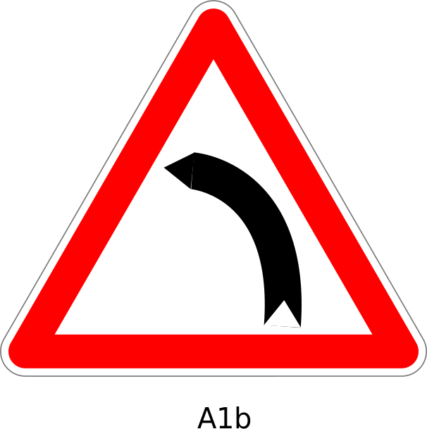 This features a red and white sign with an arrow pointing to the left. The arrow is black in color, giving it a contrasting appearance against the red background of the sign. This sign appears to be a warning or directional sign, possibly indicating a sharp turn ahead for drivers. The design of the sign suggests that it may be used in France, as indicated by its French language label.