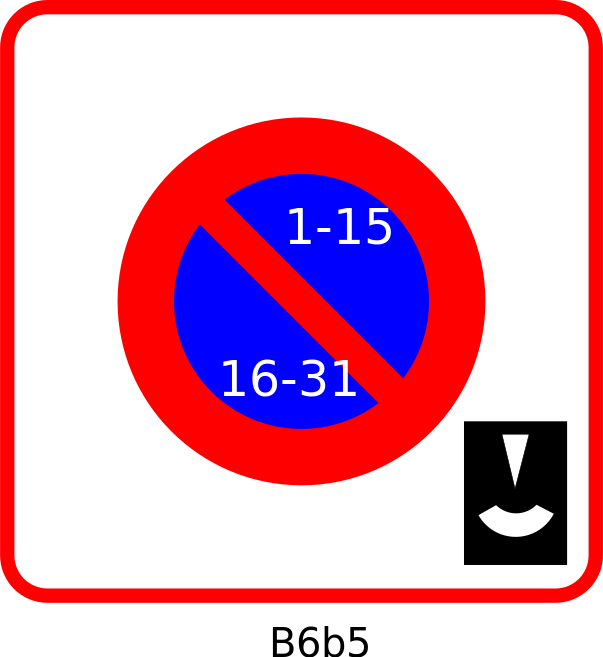 This features a red and blue sign with the number 16-19 written on it. This sign is likely placed in France, as indicated by its location. The sign has a no entry symbol on it, indicating that vehicles are not allowed to enter the area. The combination of colors and symbols suggests that this sign is meant to be easily recognizable for drivers and pedestrians alike.