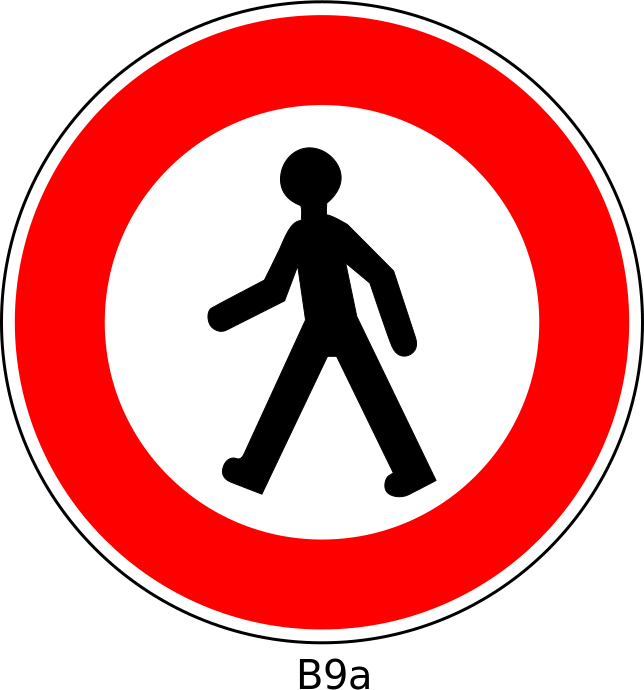 This features a red and white sign with an outline of a person walking. This sign is likely meant to indicate pedestrian crossing or a designated area for people to walk. The figure appears to be black, giving it a contrasting appearance against the red background. The sign has a number 8A written in the bottom left corner, which might provide additional information about the location or regulations associated with this particular sign.