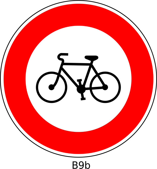 This features a red and white circular sign with the number 8BJ written in black. This sign is likely related to bicycle traffic or parking restrictions, as it is placed on a roadway. The sign's design resembles a bike wheel, giving it an interesting visual appeal.