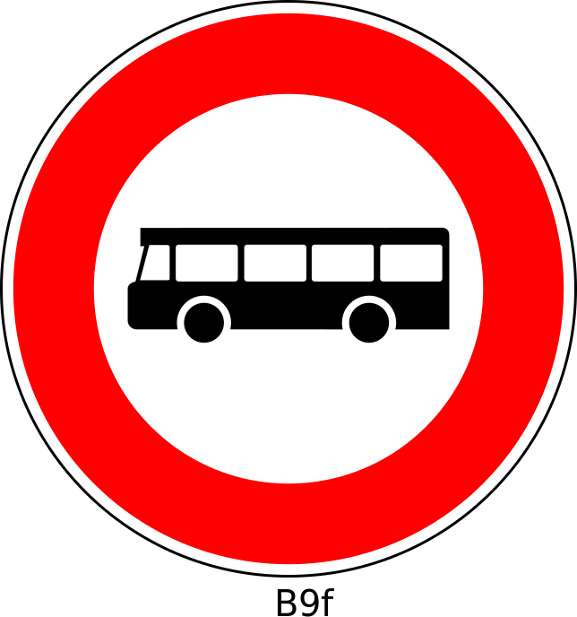This features a red and white sign with the number 8 on it. This sign is likely related to buses, as there are two black and white buses depicted in the background. One bus is located towards the left side of the sign, while the other bus is positioned more centrally. These buses appear to be driving down a road or possibly parked near the sign. The overall scene suggests that this could be an area where buses are either picking up passengers or waiting for their next route.