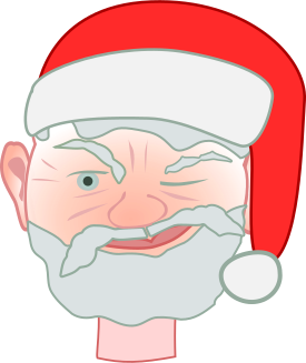 This features a cartoonish drawing of Santa Claus with a winking expression. He is wearing a red hat and has a beard, giving him a jovial appearance. The Santa face appears to be the main focus of the image, taking up most of the frame.