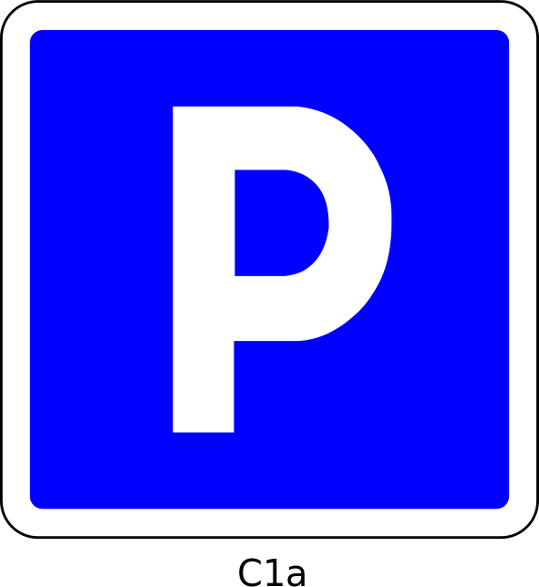 This features a blue sign with the letter "P" in white. This sign is likely associated with parking or traffic regulations, as it is commonly used to indicate parking spaces or restricted areas. The color scheme of the sign is striking and easy to read, making it an effective visual aid for drivers and pedestrians alike.