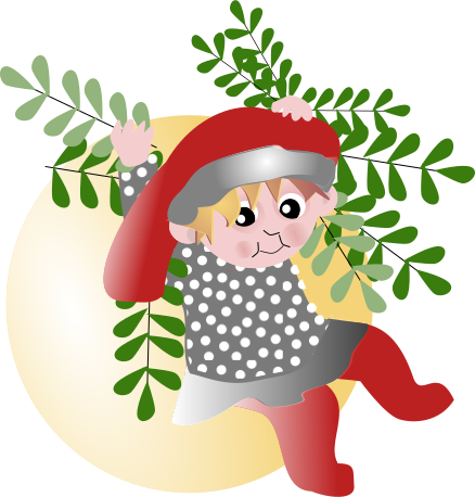 This features a cute cartoon character, possibly a little girl or boy, wearing a red hat and holding green leaves in its hands. The character appears to be swinging from a branch with the leaves, giving it an adventurous and playful appearance. The scene is set against a yellow background that adds warmth and brightness to the image.