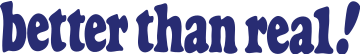 This is a brown background with white lettering that reads "Better than real!". The letters are arranged in a way that they appear to be floating on the surface of the brown background. This text appears to be part of an advertisement or promotional material, possibly for a product or service related to better quality or improved performance.