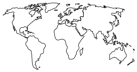 This is a black and white drawing of the world, featuring various countries and continents. It showcases the different regions of the globe, including Europe, Asia, Africa, North America, South America, Australia, and Antarctica. Each continent is represented by its own distinct shape or outline, making it easy to identify where each region lies on the map. The drawing provides a clear visual representation of the world's geography, allowing viewers to appreciate the vastness and diversity of our planet.