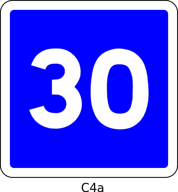 This features a blue sign with the number 30 written on it. This could be a road sign or possibly an advertisement, as the color and design of the sign are consistent with those used for road signs in France. The sign is placed against a white background, which further emphasizes its boldness and visibility.
