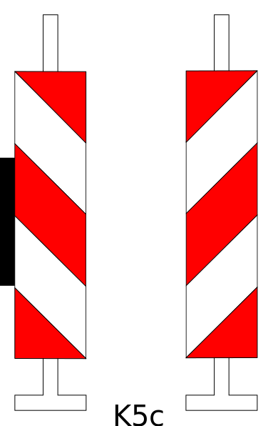 This features a pair of red and white striped poles, with each pole having a number on it. The numbers are in black and appear to be the letters KC. These poles are placed next to each other, creating an interesting visual effect. The combination of colors and numbers gives the impression that these poles might be used for traffic control or directional guidance.