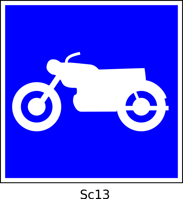This features a blue sign with an outline of a motorcycle on it. This sign is likely meant to indicate that parking for motorcycles is allowed in the area. The motorcycle symbol is prominently displayed, taking up most of the space on the sign. The sign appears to be placed against a white background, which helps to make the motorcycle symbol stand out even more.