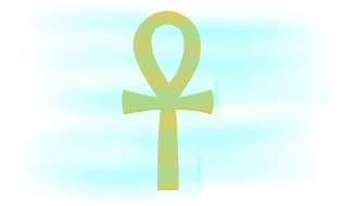 This features a yellow and blue ankh, which is a symbol of ancient Egyptian culture. It appears to be the main focus of the picture, with its vibrant colors standing out against the background. The ankh's shape resembles a cross, but it has a distinctive loop at the top, giving it a unique appearance. This symbol holds great significance in Egyptian mythology and is often used as a decorative element or to represent spirituality and eternal life.