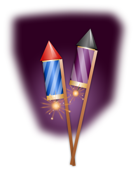 This features two fireworks with sparks coming out of them, attached to large wooden sticks. They are placed on a dark purple background, creating an eye-catching contrast between the fireworks and their surroundings. The fireworks appear to be lit up, adding a sense of excitement and energy to the scene. This illustration could potentially be used for various purposes such as advertising, decorations or even as part of a children's party theme.