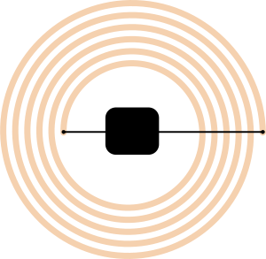 This features a small black square in the center of a circle, which is surrounded by a series of concentric circles. The central square appears to be an HF-RFID tag or transponder, while the surrounding circles create a visually appealing pattern. This design could potentially represent a futuristic or technological concept, with the black square symbolizing advanced technology and the concentric circles adding depth and interest to the overall composition. The image may evoke feelings of curiosity and wonder about the potential applications of such technology in our daily lives.