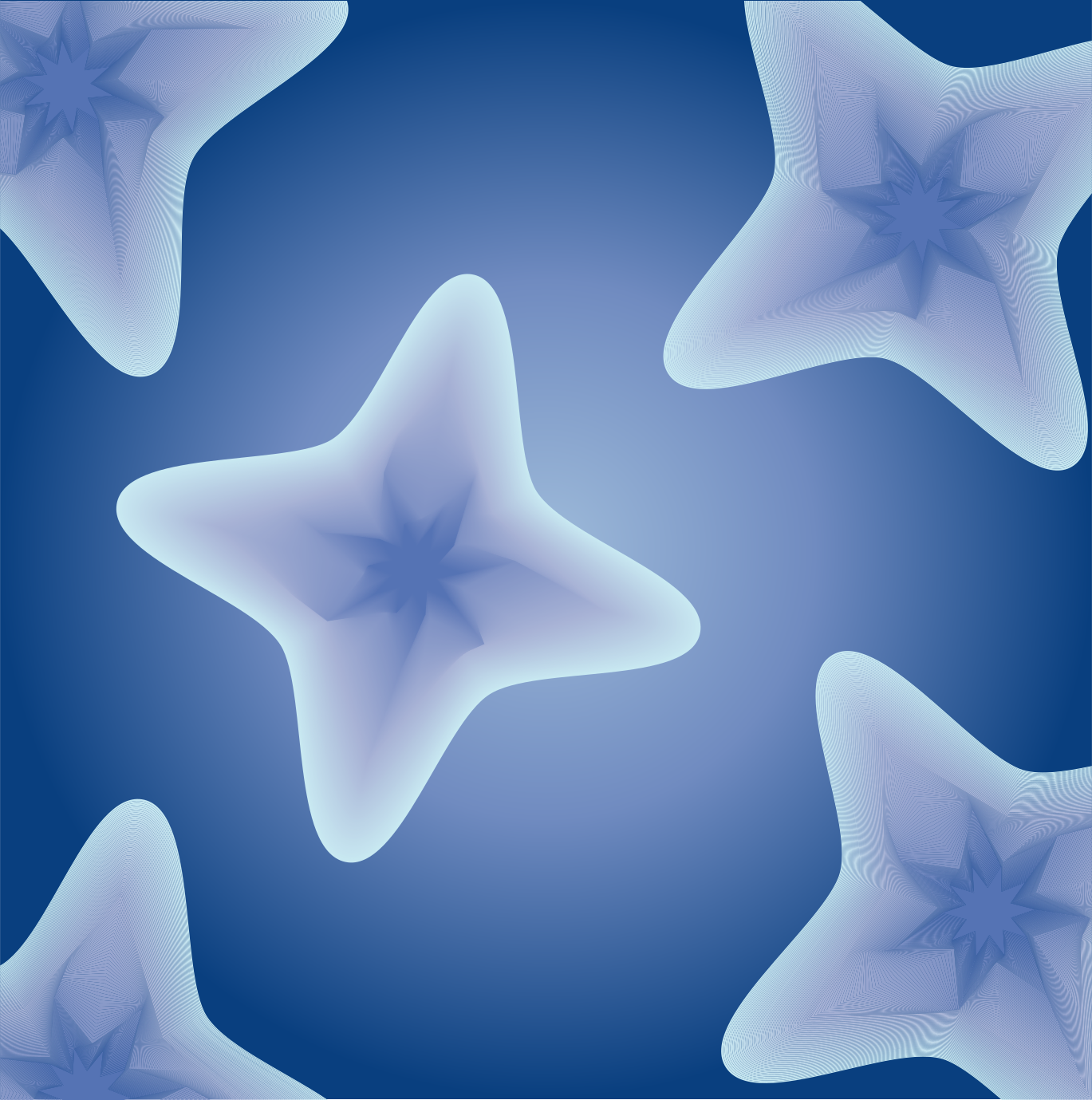 This features a blue background with five starfish floating in the air. Each of these starfish is unique, and they are positioned at different angles within the scene. They appear to be made of glass or have a similar texture, giving them an interesting appearance. The overall effect creates a visually appealing and artistic display that captures the viewer's attention.