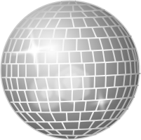 This features a large, shiny disco ball with a metallic surface. It is made up of many small squares that reflect light and create an eye-catching pattern. The ball appears to be the central focus of the scene, drawing attention due to its unique design and glossy appearance.