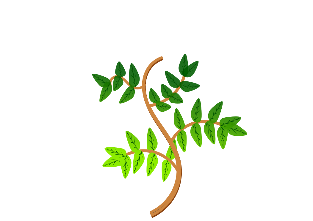 This features a brown tree branch with green leaves on it. The branch is curved and appears to be growing out of the ground, giving an impression of a small tree sprouting from the soil. The leaves are scattered along the length of the branch, providing a natural and vibrant touch to the scene. This image captures the essence of nature's growth and development in a simple yet visually appealing manner.