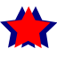 This features a red star with blue stars in the background. The main red star is large and takes up most of the space, while the smaller blue stars are positioned around it. This design creates an interesting contrast between the bold red color and the more subtle blue hues. The overall appearance suggests that this could be a logo or symbol representing something related to the colors red and blue.