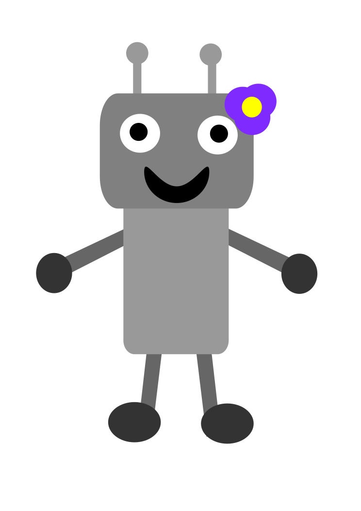 This features a cute robot character with a purple flower on its head, standing in front of a brown background. The robot is designed to look like it's smiling and has a friendly appearance. It appears to be the main focus of the image, taking up most of the frame. The combination of the robot's design and the purple flower adds a touch of whimsy and charm to the overall scene.