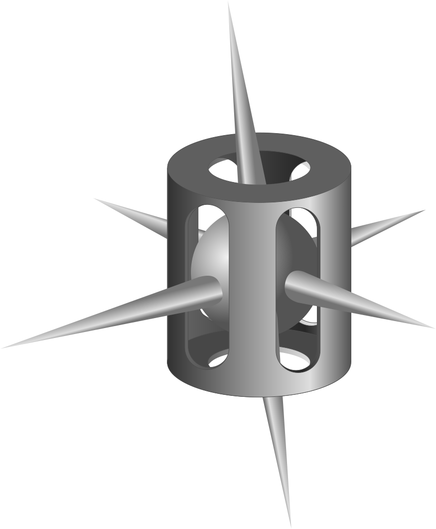 This features a three-dimensional model of an oddly shaped object that resembles a spiky metal structure. It has multiple protruding points, giving it the appearance of a spike or a sharp object. The model is displayed in a white background, which highlights its unique shape and design. This intriguing piece of artwork could be used for various purposes such as decoration, sculpture, or even as an architectural element.