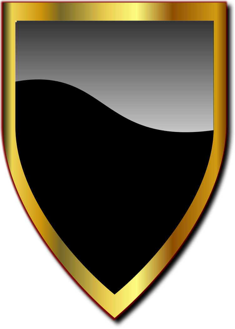 This features a shield with a black background and gold trim. The shield is adorned with a mountainous landscape, giving it an elegant appearance. The mountain range stretches across the entirety of the shield, creating a sense of depth and dimension. This design showcases both the beauty of nature and the craftsmanship involved in creating such a unique piece of artwork.