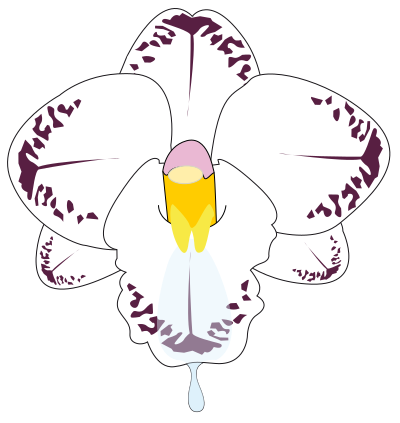 This features a beautiful white orchid with purple patterns on it. In the center of the flower, there is a yellow and pink color that adds to its visual appeal. The orchid appears to be in a close-up view, allowing for a detailed look at its intricate design. This artistic representation of an orchid showcases the delicate beauty found in nature.