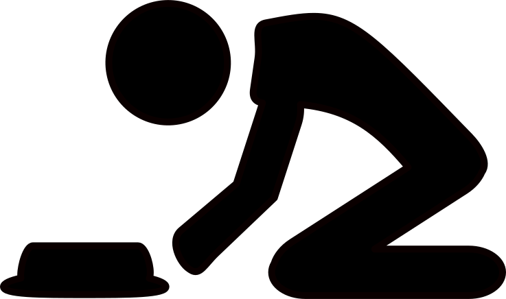 This features a black and white silhouette of a person bending over to pick up a bowl. The person's arms are outstretched, with one hand holding the bowl in place while the other is reaching down to grab it. The scene appears to be set on a table or countertop, as there is no visible floor beneath the person. This silhouette could represent someone trying to pick up a dropped dish or simply engaging in an act of care and attention towards their surroundings.