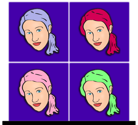 This features four different colored cartoon heads of women, each with distinctive hair colors. The first head is pink, the second one is blue, the third one is green, and the fourth one is red. Each woman's face has a smiling expression, making them appear friendly and approachable. The colorful cartoons are placed on a purple background that adds to the overall visual appeal of the image.