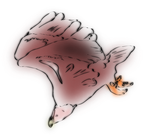 This features a bird with its beak open, possibly eating or drinking. It is an artistic drawing of the bird's head and neck, showcasing its distinctive features such as the beak and feathers. The bird appears to be in mid-flight, giving it a dynamic and free-spirited appearance. The image captures the beauty and grace of this particular species of bird, making it an interesting and visually appealing piece of artwork.