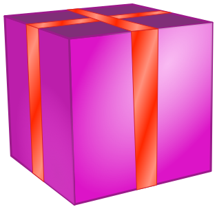 This features a large, bright pink box with red ribbon. It is a three-dimensional representation of the box and its contents, making it appear as if it's a real gift. The box has a square shape, giving it an appealing appearance. The red ribbon adds to the festive nature of the gift, suggesting that it could be a special occasion or celebration.