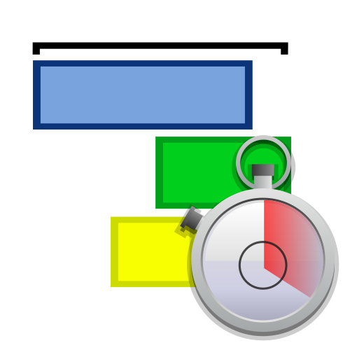 This features a stopwatch with the time displayed as 1:50. The clock is positioned in the center of the scene, and it appears to be an animated or graphic representation rather than a real-life object. Surrounding the stopwatch are three colored rectangles, each one occupying a different part of the image. These rectangles may represent various elements or aspects related to the timekeeping device. The overall composition of the image suggests that it could be an illustration or visual representation of a timed project or activity.