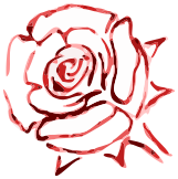 This features a red rose with a darker shade in some areas and lighter pink in others. It appears to be drawn or painted, giving it an artistic touch. The rose is the main focus of the image, occupying most of the frame.