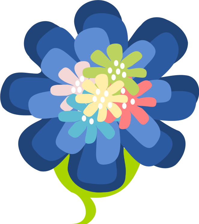 This features a blue flower with a yellow stem, and it is adorned with small colorful flowers in the center. The blue petals of the flower are arranged in an attractive manner, creating a visually appealing design. The yellow stem adds a touch of contrast to the overall composition, making the flower stand out even more. This illustration showcases the beauty and intricacy of nature's creations, with each detail carefully crafted to create a harmonious and eye-catching image.