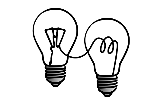 This features two black and white light bulbs connected by a wire. Each of the light bulbs has a single filament, giving them an old-fashioned appearance. They are placed side by side, creating a sense of unity between the two objects. The simplicity of their design and the absence of any color make them appear more like a classic or vintage style. This image could be used to represent a nostalgic or retro theme, as it evokes feelings of an earlier time when light bulbs were not yet colored and had a more minimalist appearance.