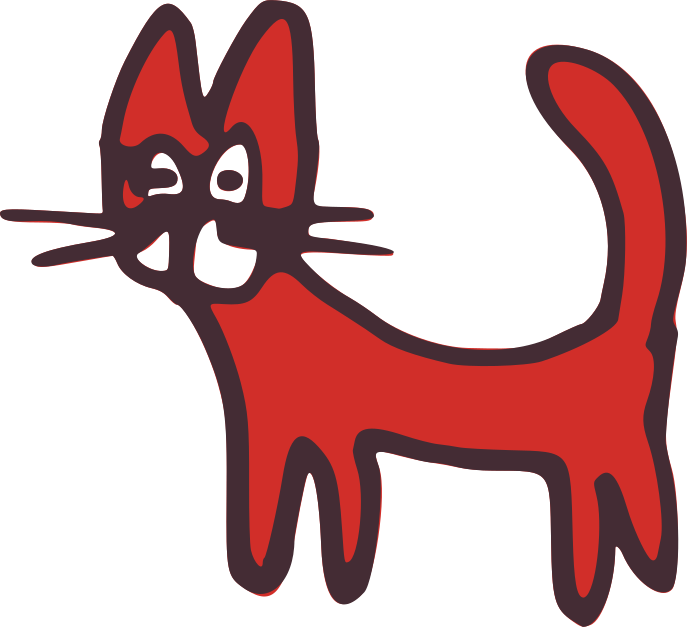 This features a red cat with black outlines, standing in the foreground. It appears to be an illustration or cartoon-like drawing of a cat, possibly used as a decorative element or for artistic purposes. The cat's body is predominantly red, but its facial features and other parts are drawn with black lines, creating a contrasting effect. This unique design choice adds visual interest to the image and makes it stand out from typical representations of cats in everyday life.