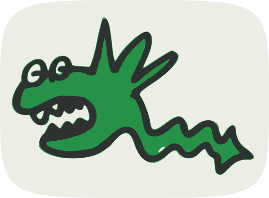 This features a green dragon with an open mouth, giving the impression of being ready to eat. It is depicted in a cartoon-like style and appears to be moving quickly across the screen. The dragon's body is long and curved, creating a sense of motion as it moves through the scene. This image could potentially represent a character from a video game or an animated show, capturing the viewer's attention with its dynamic and engaging appearance.