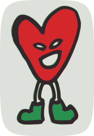 This features a large, colorful heart with a face drawn on it. The heart is smiling and appears to be standing up in the air. It has green shoes and legs, giving it a playful and fun appearance. The heart's facial expression adds a sense of humor and friendliness to the image.