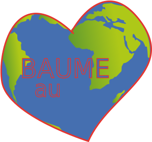 This features a heart-shaped design with the words "Baume au coeur" written in red. This phrase is French for "hearted," which suggests that the heart shape represents love or affection. The heart is placed over an illustration of Earth, showcasing our planet as the center of this emotion. The combination of the heart and the globe creates a visually appealing and meaningful design.