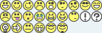 This displays a collection of various emoticons, including smiles and frowns. There are at least twenty-four different emoticons in the picture, with some being yellow faces and others having exclamation points or question marks. These emoticons are arranged in rows, creating an organized appearance. They can be used to convey emotions or reactions through text messages, emails, or other forms of digital communication. The variety of expressions captured in this image allows for a wide range of interpretations and uses depending on the context in which they are employed.