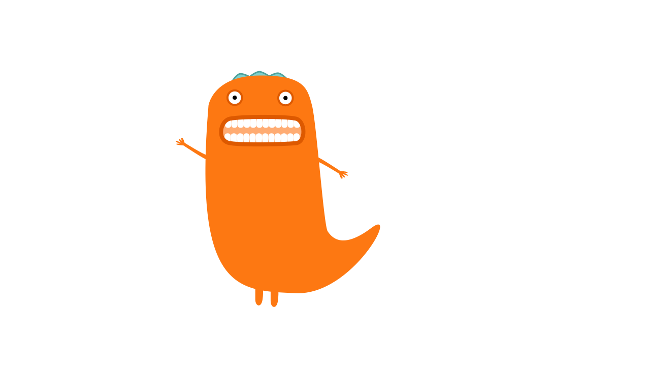 This features a cartoon-like orange monster with a big smile on its face, waving at the viewer. It appears to be an illustration or drawing of a character, possibly from a children's book or animated show. The monster is standing in front of a white background, which provides a clean and uncluttered backdrop for the image. Its cheerful expression and friendly demeanor make it an appealing and engaging visual element.