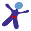 This features a blue cartoon character, possibly a man or robot, with its arms outstretched and legs spread apart. It appears to be in motion, as if it is running or jumping. The character's body is purple, giving it a unique appearance. This colorful figure could represent an action-packed scene or simply serve as a fun and engaging visual element.