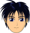 This is a cartoon drawing of a person's head with short hair. The face features two blue eyes, and the mouth is slightly open as if speaking or smiling. The drawing has been colored in shades of blue, giving it a unique and vibrant appearance. The overall style of the drawing suggests that it could be from an animated show or comic book.