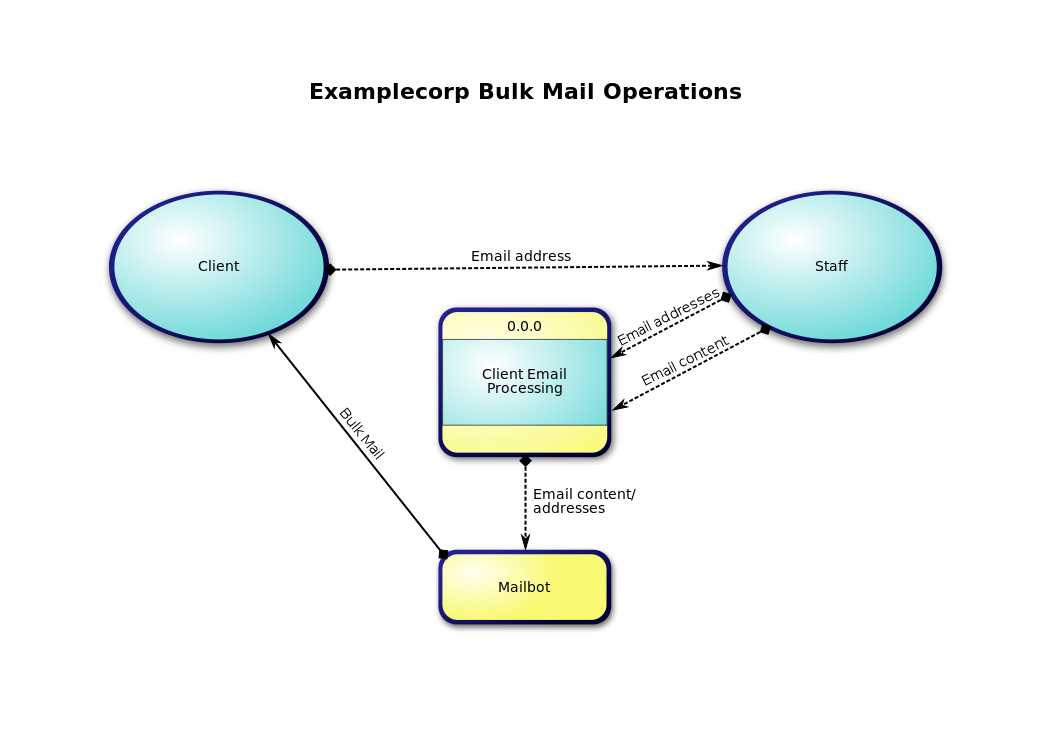 This depicts a diagram of an email system, specifically focusing on the process of bulk mail operations. There are three main components in the diagram: the client, the server, and the database. The client is connected to the server via the internet, where it sends emails through the server's email service. The database stores information about the clients, such as their email addresses and other relevant data. The diagram also shows a flowchart of the process involved in sending bulk mail. This includes steps like creating an email message, adding recipients to the list, and sending the email using the server's email service. Additionally, there are several labels on the image that provide more information about each component of the system. Overall, this diagram provides a clear visual representation of how bulk mail operations work within an email system.