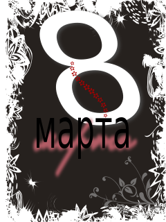 This features a black and white design with the number 8 in red. The background is filled with various decorative elements, including stars and flowers. There are several stars scattered throughout the scene, some larger than others, while the flowers come in different sizes and shapes. The combination of these elements creates an intricate and visually appealing pattern that draws attention to the number 8.