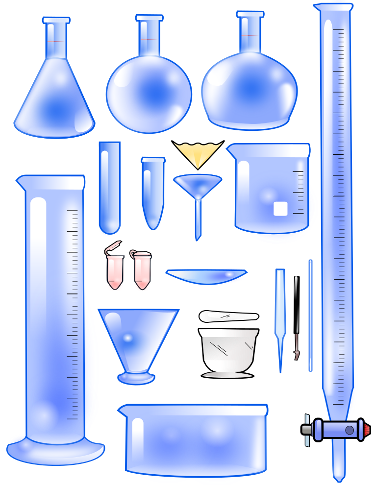 This features a collection of various chemistry equipment, including several beakers and measuring tools. There are at least 13 different types of beakers in the scene, each with unique shapes and sizes. Some of these beakers are placed close to one another, while others are spread out across the image. In addition to the beakers, there is a range of other equipment displayed, such as measuring cups, flasks, and pipettes. There are at least 12 different types of flasks in various sizes and shapes, with some placed close together and others more spaced out. The measuring cups come in three distinct sizes, while the pipettes vary in length and design. Overall, this image showcases a diverse collection of chemistry equipment that would be useful for conducting experiments or studying scientific principles.