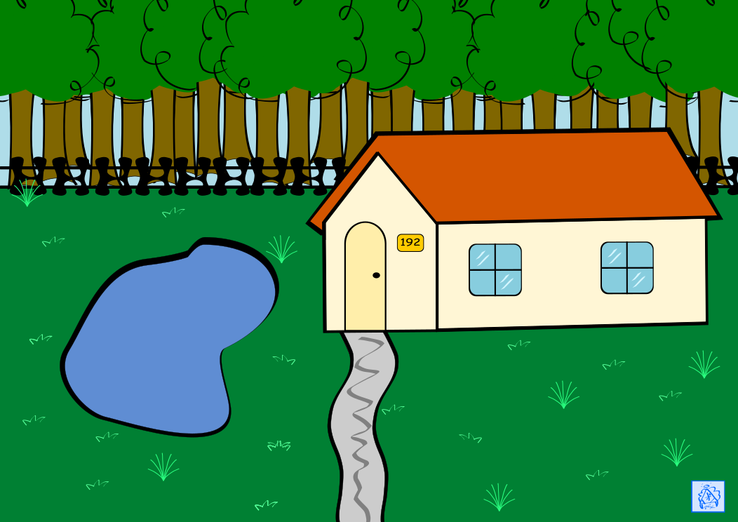 Tags: clip art, clipart, environment, landscape, house, tree, pond