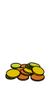 This features a small pile of coins, which are arranged in a visually appealing manner. There are several gold and yellow colored coins scattered throughout the scene, creating an attractive display. The coins are placed on top of each other, with some overlapping to create depth and interest in the composition. This arrangement of coins can be seen as both functional and decorative, making it a unique and eye-catching image.
