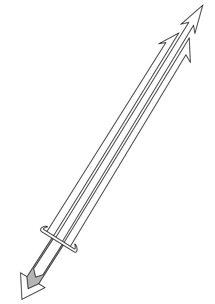 This features a white background with an arrow pointing towards the top right corner. In that direction, there is a single sword drawing, which appears to be a simple and minimalistic representation of a weapon. The arrow's positioning suggests it is guiding the viewer's attention towards the sword, making it the focal point of the image.
