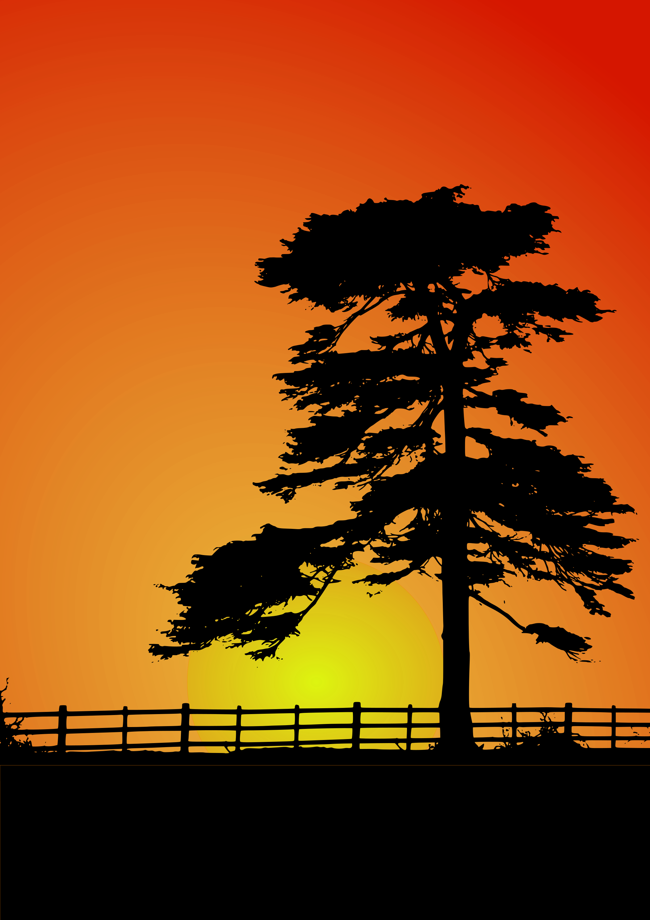Tags: cedar, fence, red, shadow, silhouette, sun, sunrise, sunset, tree, yellow, tree sunset