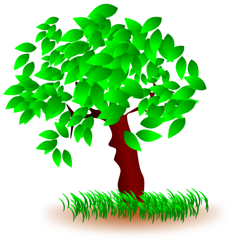 This features a large tree with green leaves and brown branches. It appears to be an illustration of the tree, possibly in a small patch of grass. The tree is quite tall, reaching upwards towards the sky, giving it a majestic appearance. The leaves are spread out across the branches, creating a lush canopy that covers most of the tree's surface area. Overall, this image captures the beauty and grandeur of nature in its simplest form.